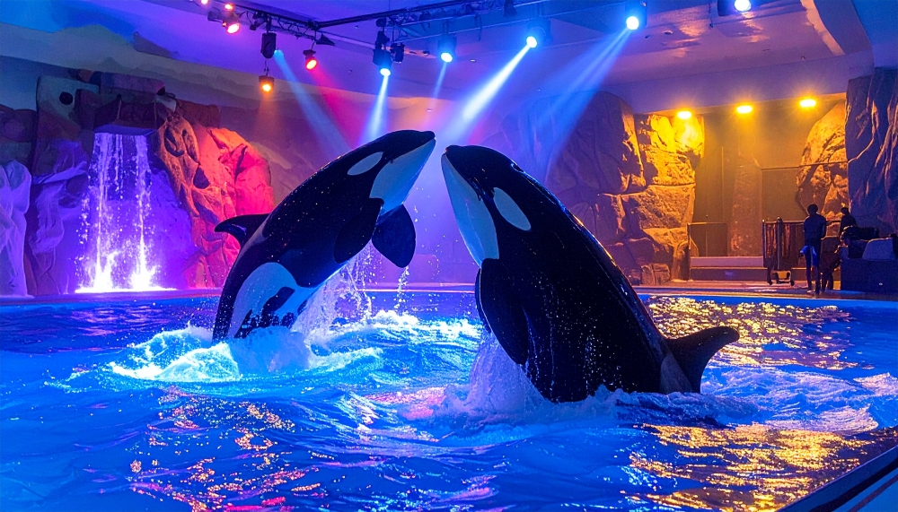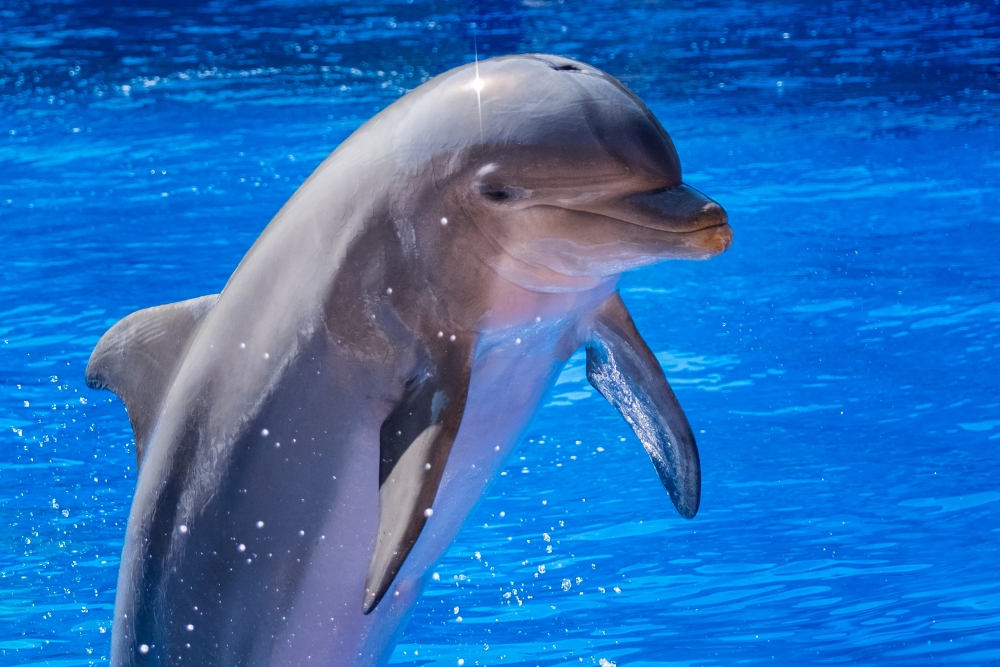 - バンドウイルカの「リーリヤ」がはしゃぎすぎてスタッフがずぶぬれになりました
